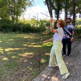 Sonnenschein und angenehme sommerliche Temperaturen. Ausgelassene Stimmung. Ratschen, was das Zeug hält. Und natürlich die fünf zu bewältigenden „olympischen“ Disziplinen, die die Abteilungsleitung als Unterhaltungsprogramm für diesen Nachmittag vorbereitet hat. Das ist Sommerfest bei den Bogenschützen auf dem Bogenplatz im Waldstadion des SC-UG. Und bis zu 37 Personen tummeln sich gleichzeitig auf dem Bogenplatz.